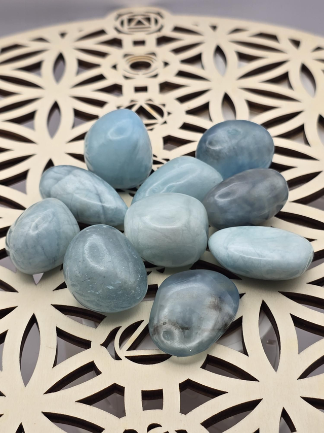 Aigue marine : Chakra de la gorge (bleu). Symbole de communication, d'expression, de pureté, d'innocence, de bonheur et de fidélité. Libère les émotions et la vérité intérieure. Accentue l'écoute et la communication. Renforce l'idée de mener à terme ses projets. Travaille sur les voies respiratoires, cordes vocales, gorge, thyroïde sinus, système immunitaire. Apporte détente et sérénité.