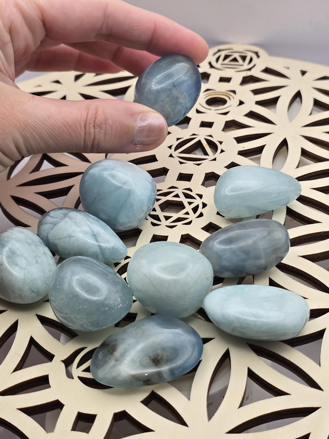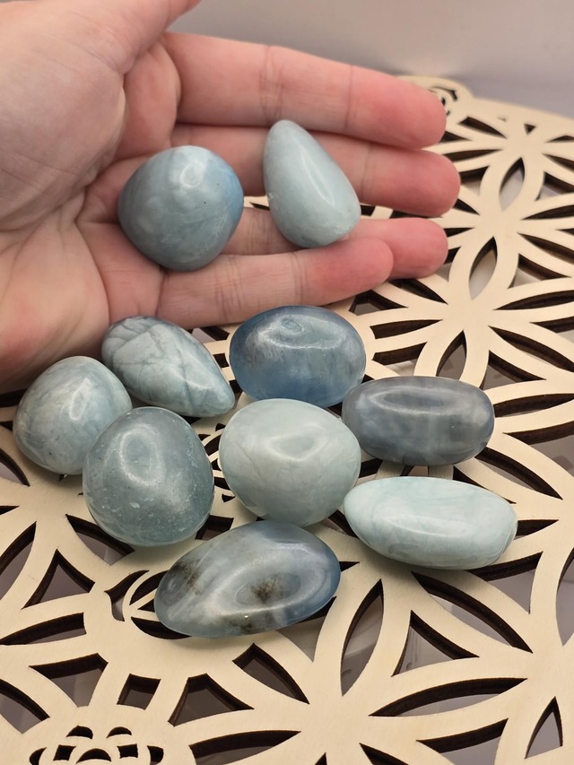 Pierre roulée en Aigue marine du Brésil qualité AA de 3 à 4 cm.