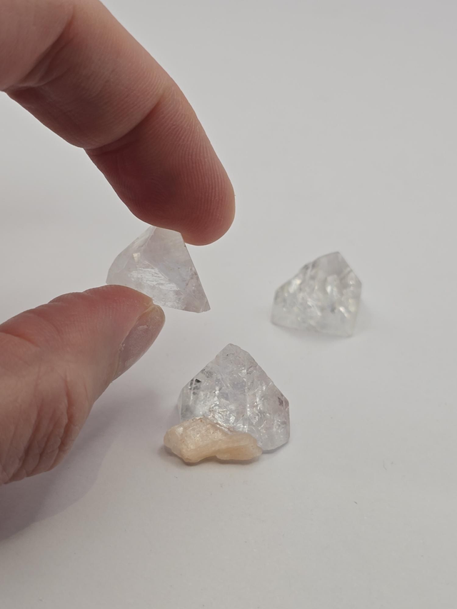 Apophylite blanche en forme de pointe, pierre brute, environ 1 cm.