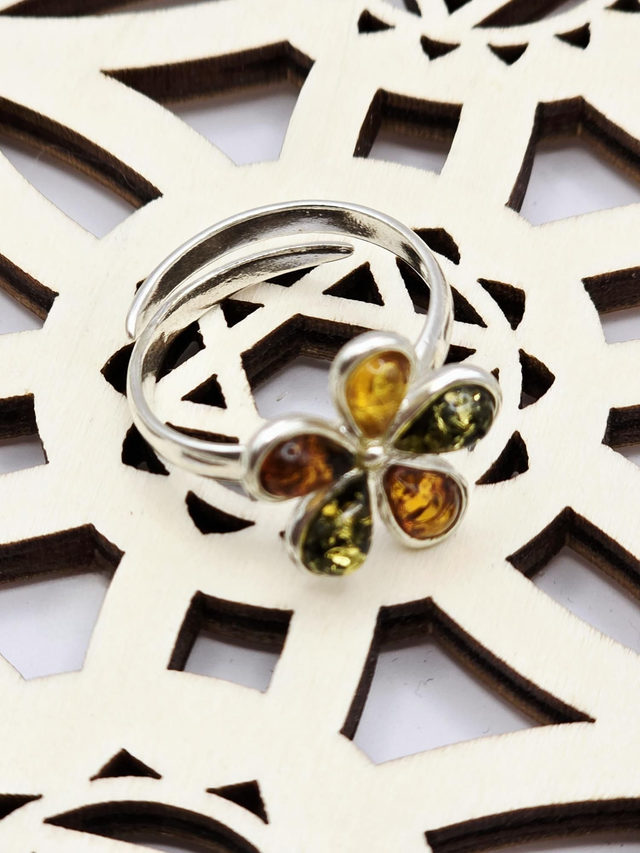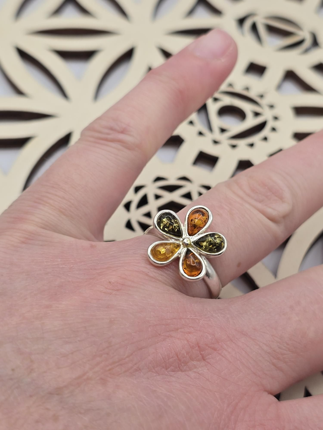 Magnifique bague en argent 925 et Ambre Baltique tricolore de Lituanie.