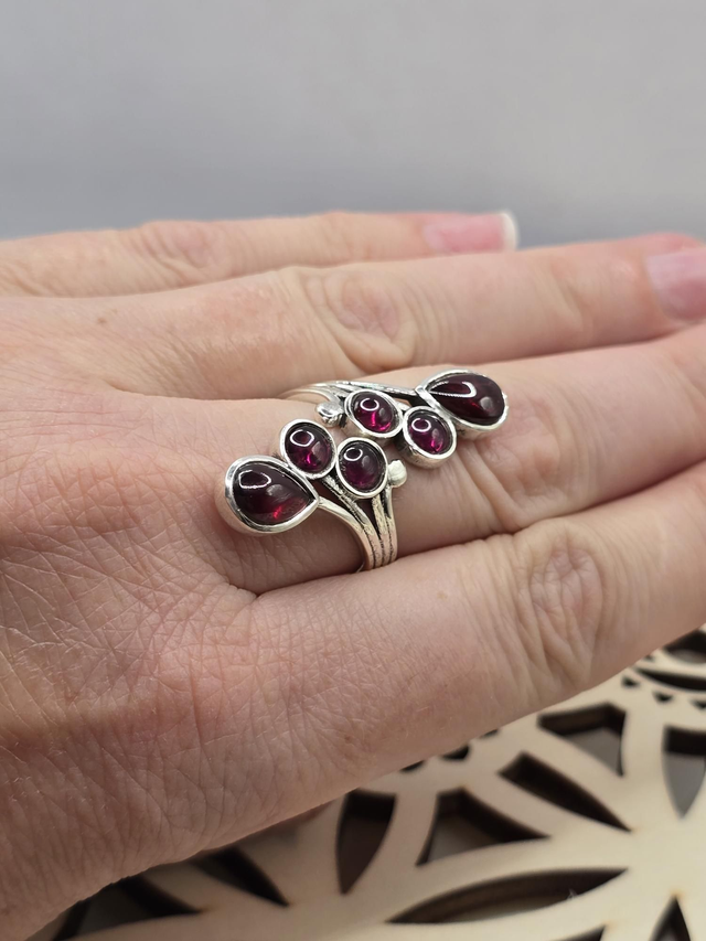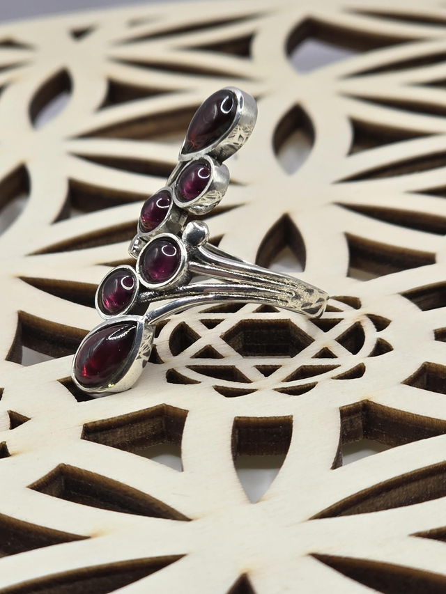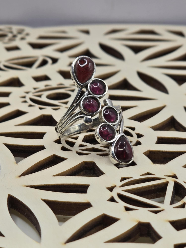 Bague réglable en Argent 925 et pierre naturelle de Grenat qualité AAA d'Éthiopie.