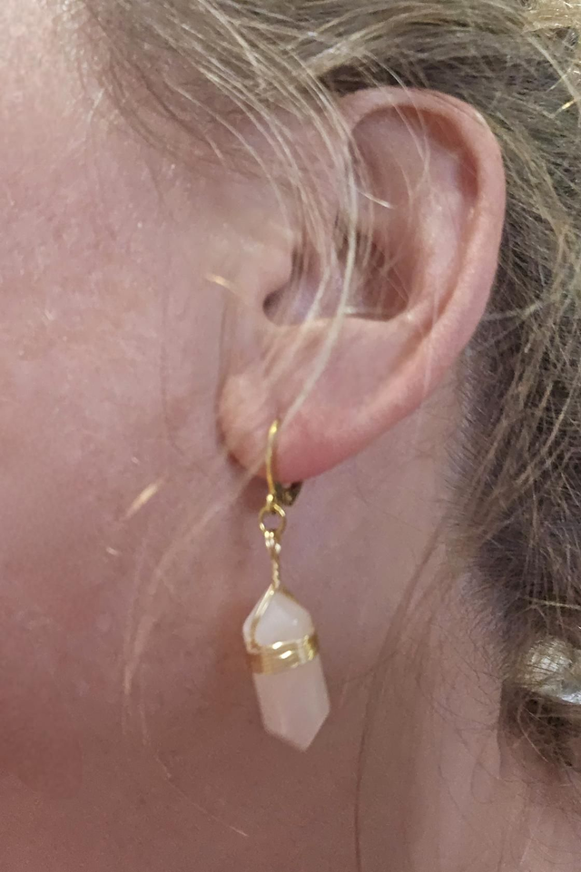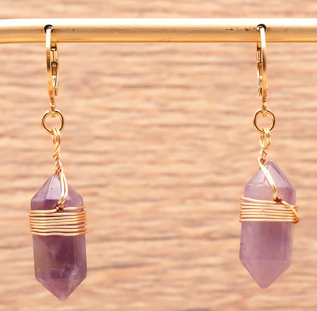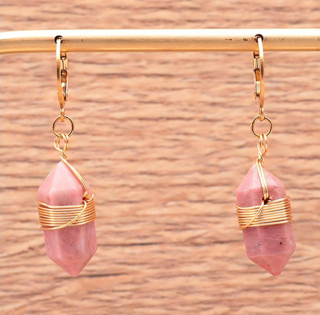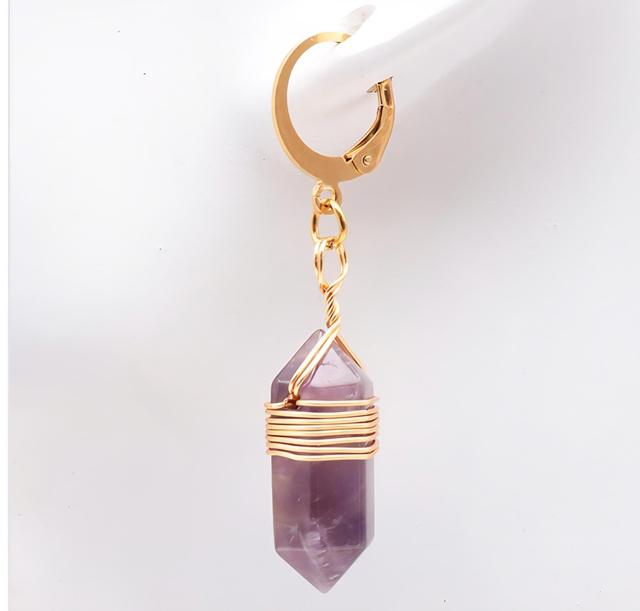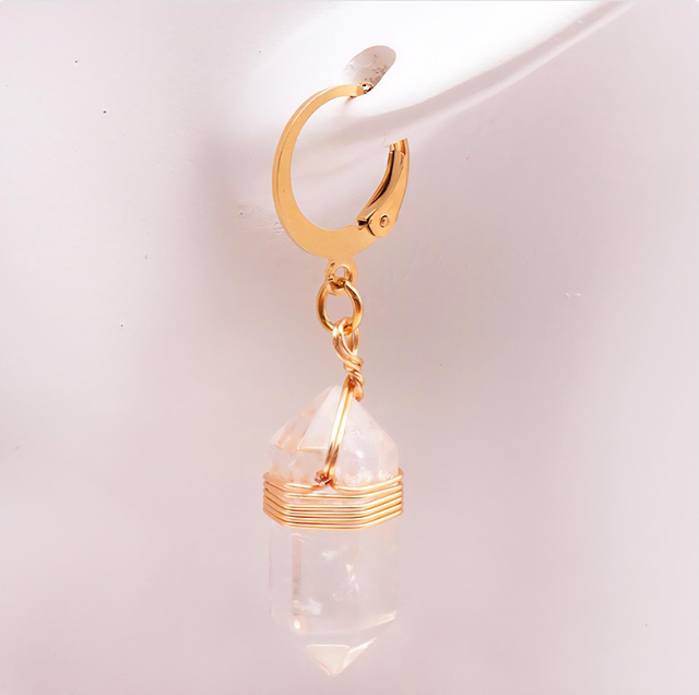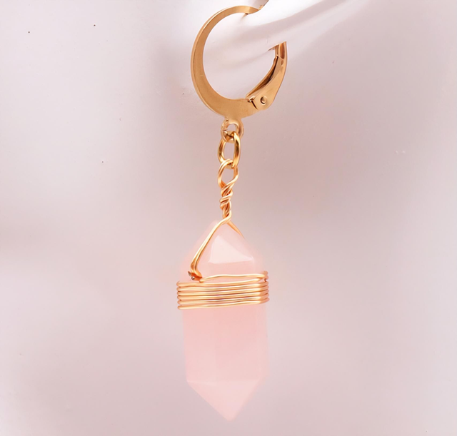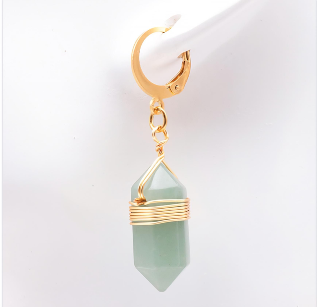 Boucles d'oreilles en acier inoxydable doré et pierre naturelle qualité A en forme de pointe.