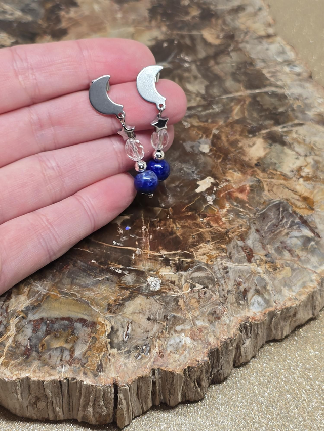 Boucles d'oreilles Lapis lazuli et Cristal de roche
