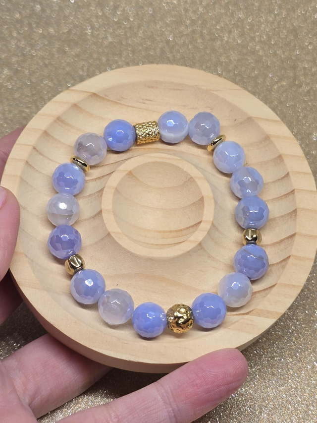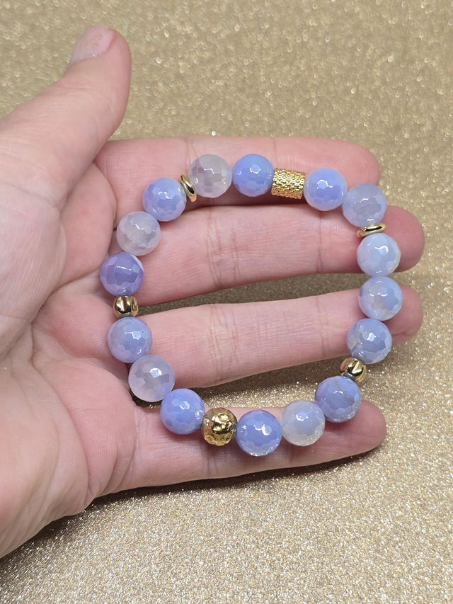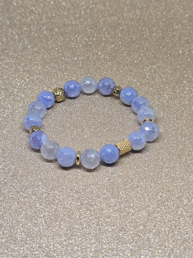 Bracelet fait main sur fil élastique solide composé d'Agate teintée à facettes en 1 cm ainsi que de perles en hématite plaquée et acier inoxydable.