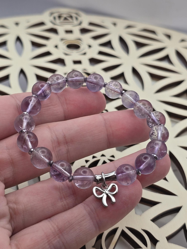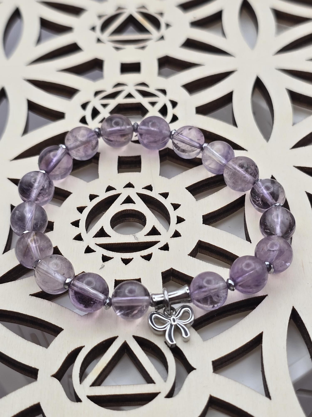 Bracelet fait main sur fil élastique solide composé d'Améthyste claire et perles en hématite plaquée et acier inoxydable.