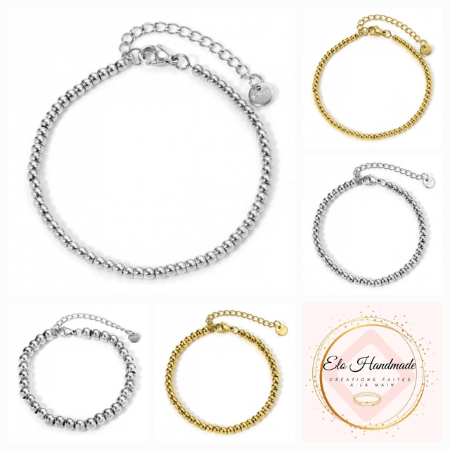 ❤️ Bracelet chaîne en Acier inoxydable 304 et perles en 0,35 mm.