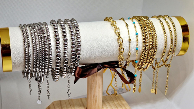 ❤️ Bracelet chaîne en Acier inoxydable 304 doré et perles en 0,35 mm.