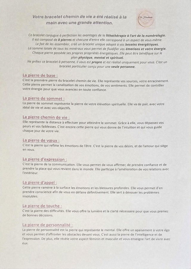 💕 Le bracelet chemin de vie est réalisé sur demande. Envoyez moi un email avec toutes les informations nécessaires et je vous adresserai par retour d'email, la composition de votre bracelet ainsi que le tarif (en moyenne 30 euros).