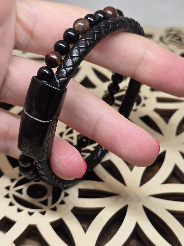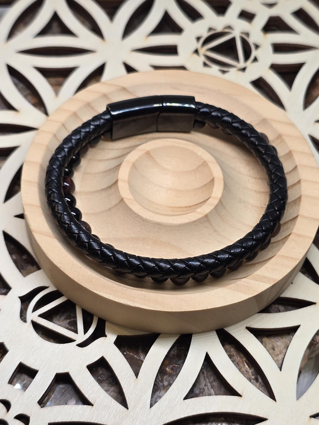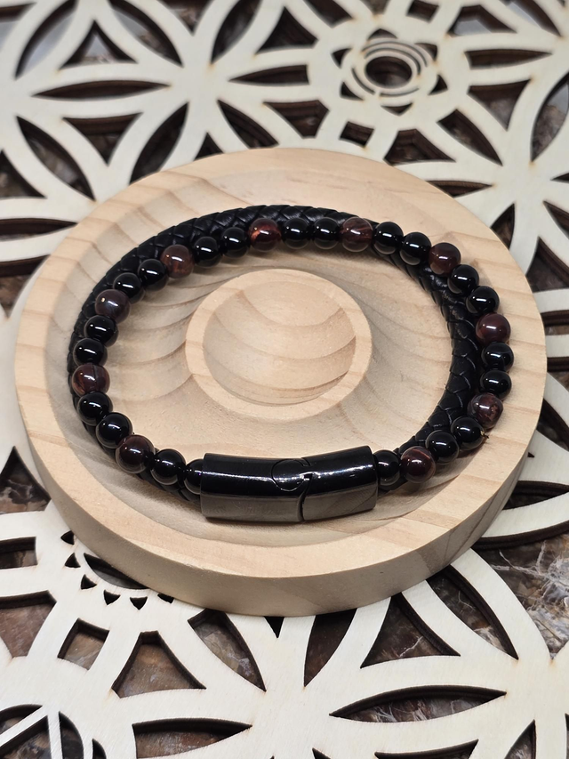 Bracelet cuir, Onyx, Œil de Taureau 0,6 cm