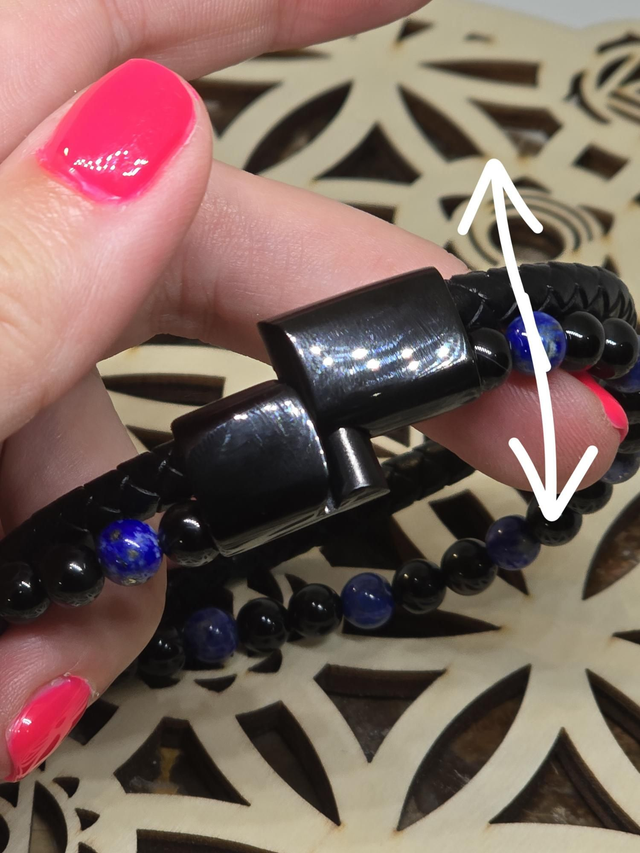 Bracelet homme en cuir noir, avec pierres naturelles en 0,6 cm et fermoir coulissant noir en acier inoxydable.