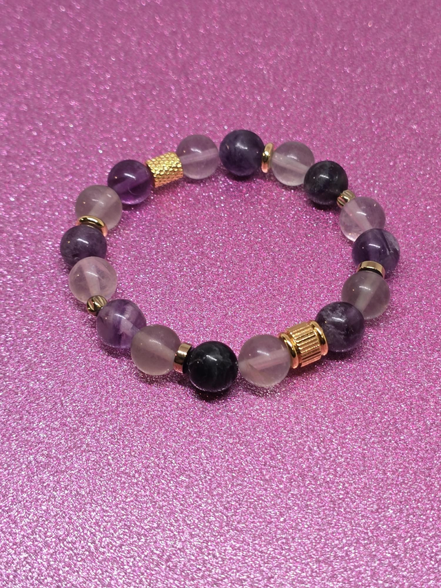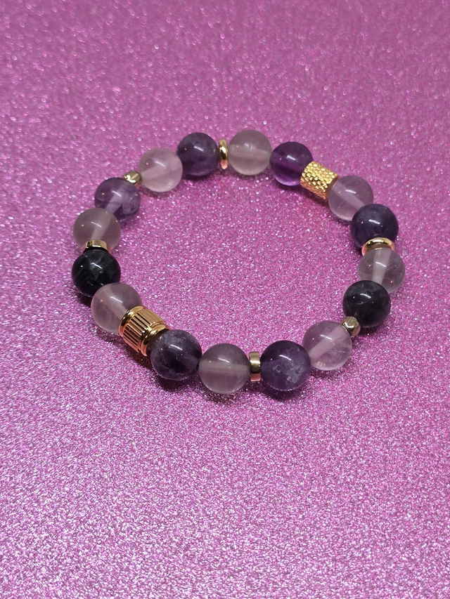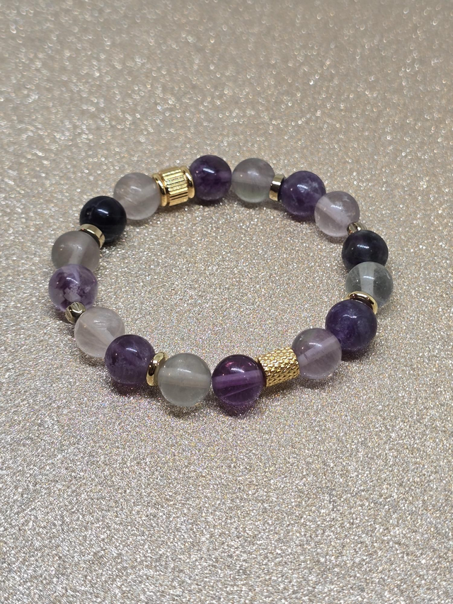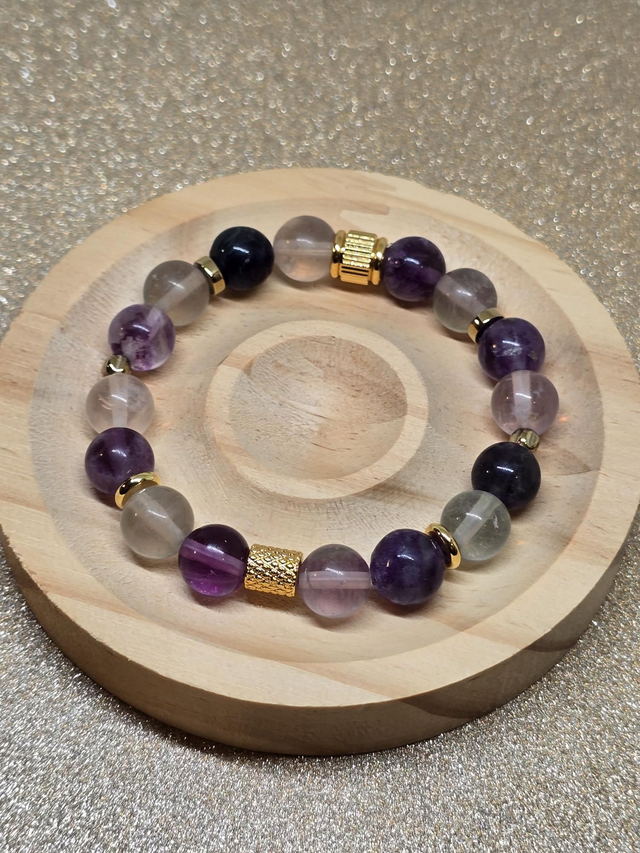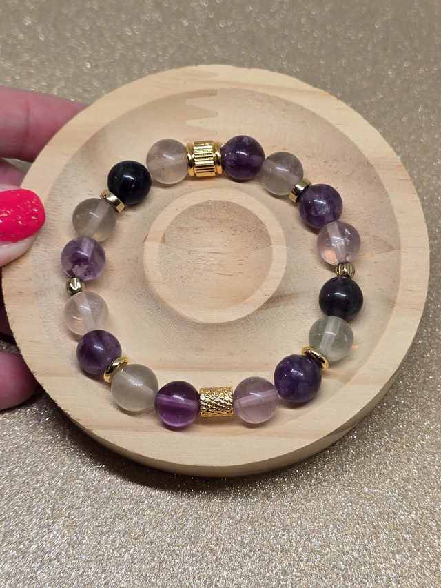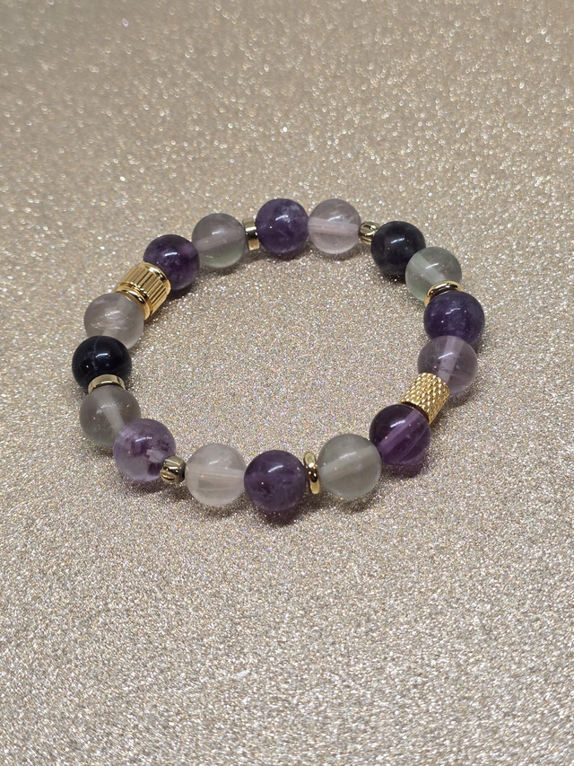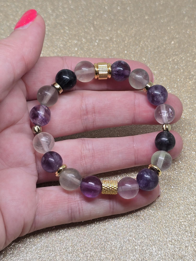 ✨ Bracelet fait main sur fil élastique solide composé de Fluorite en 1 cm ainsi que de perles plaquées et acier inoxydable.