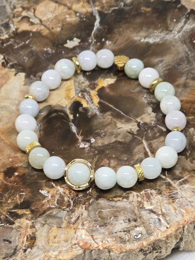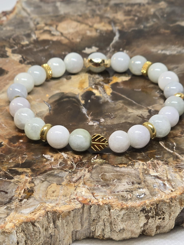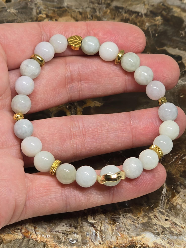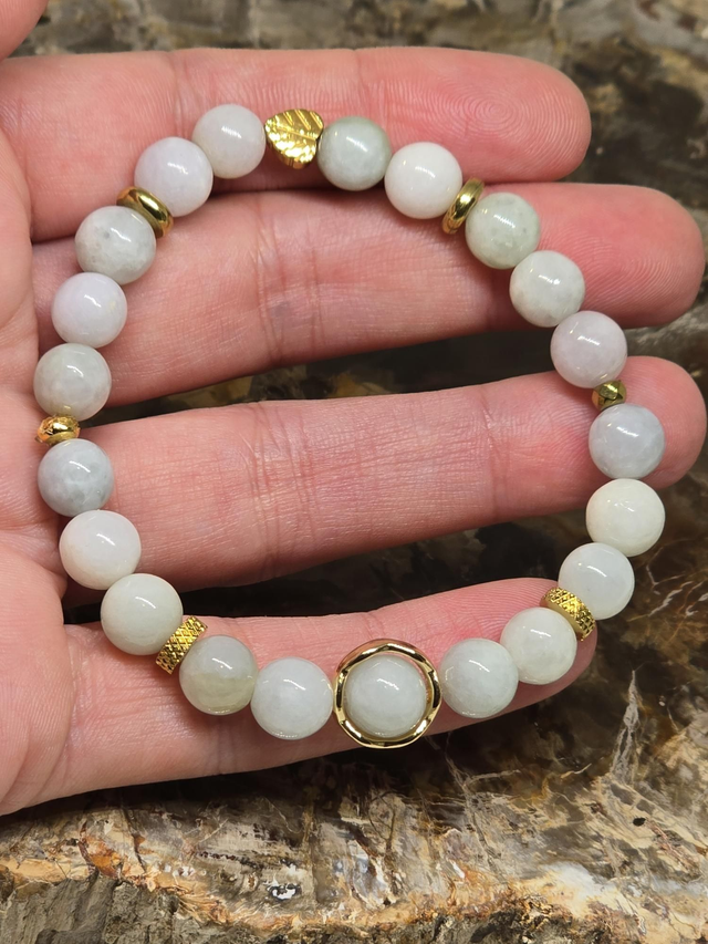 Bracelet fait main sur fil élastique solide, composé de Jade vert clair en 0,8 cm, ainsi que de perles en hématite plaquées et acier inoxydable.