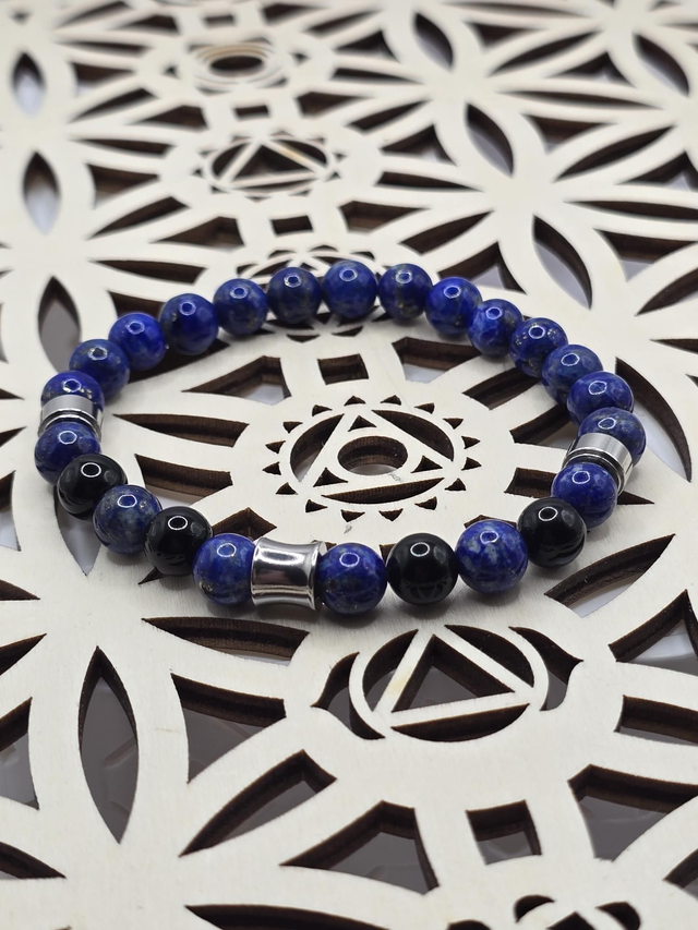 Lapis lazuli : Chakra 3ème œil (bleu), pierre de connexion, apporte clairvoyance, intuition, médiumnité, spiritualité, imagination. Pierre très sollicitée pour les douleurs chroniques, elle soulage les douleurs inflammatoires récurrentes. Elle renforce la mémoire, augmente la concentration, pierre de connaissances de soi elle permet d'avoir un regard juste sur ses potentiels, discernement, lucidité