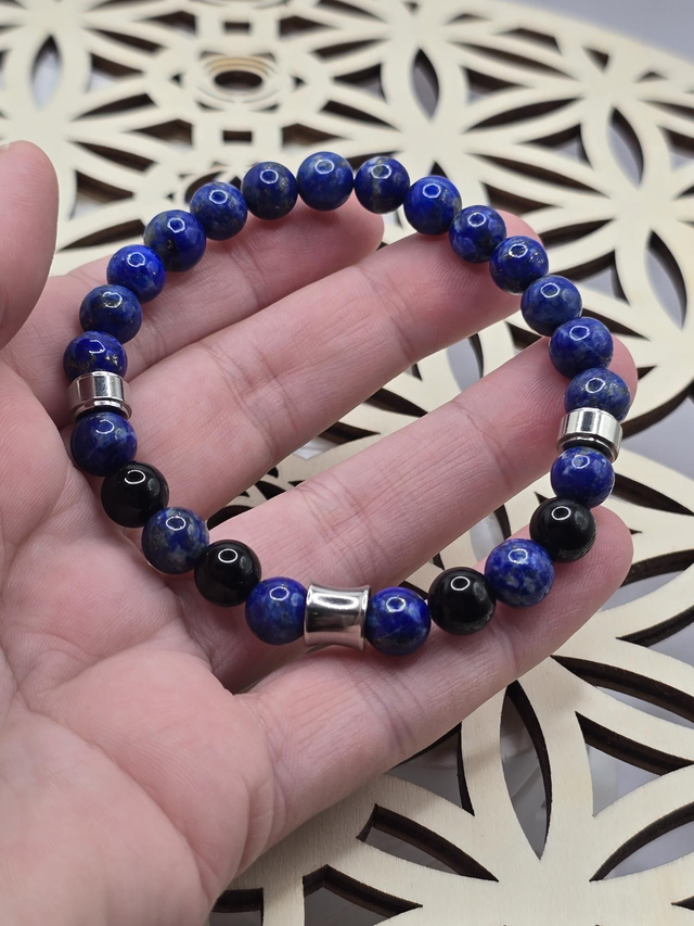 Bracelet homme sur fil élastique composé de Lapis lazuli et Onyx en 0,8 cm, qualité A et acier inoxydable