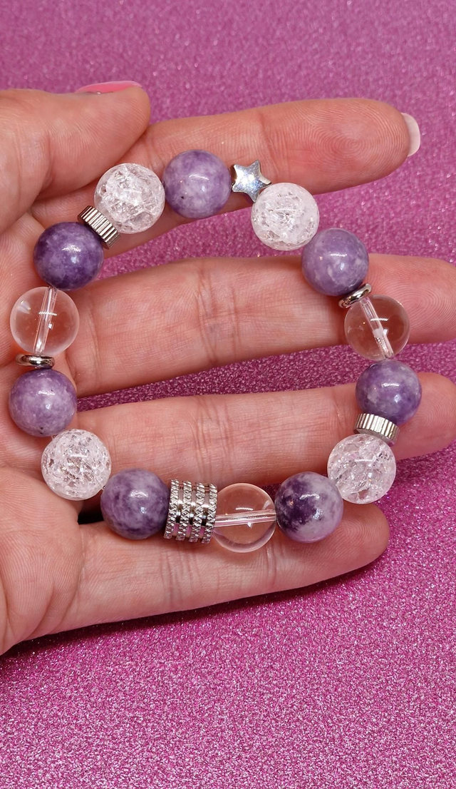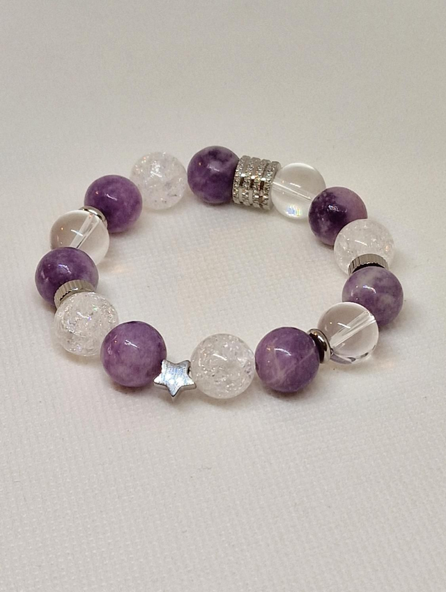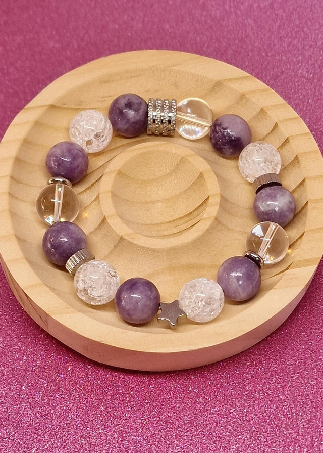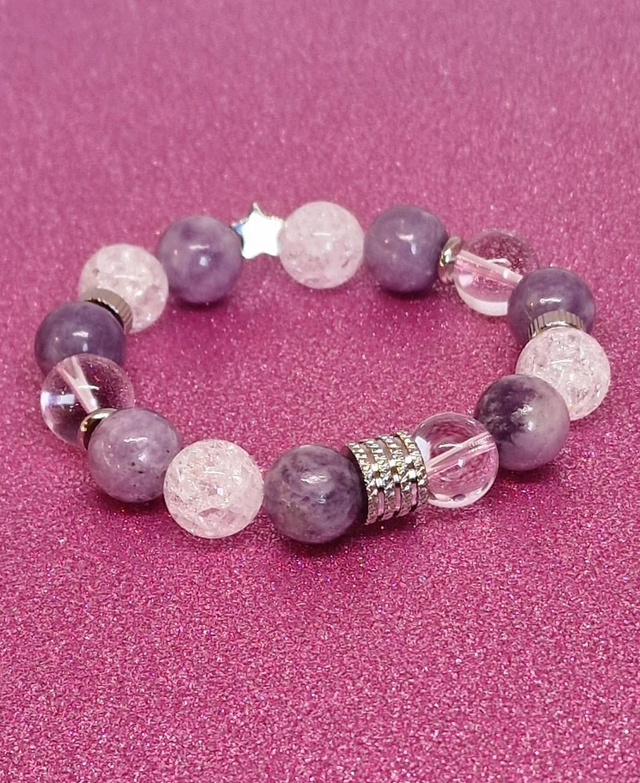 Bracelet Lépidolite et Cristal de roche XL en 1,2 cm