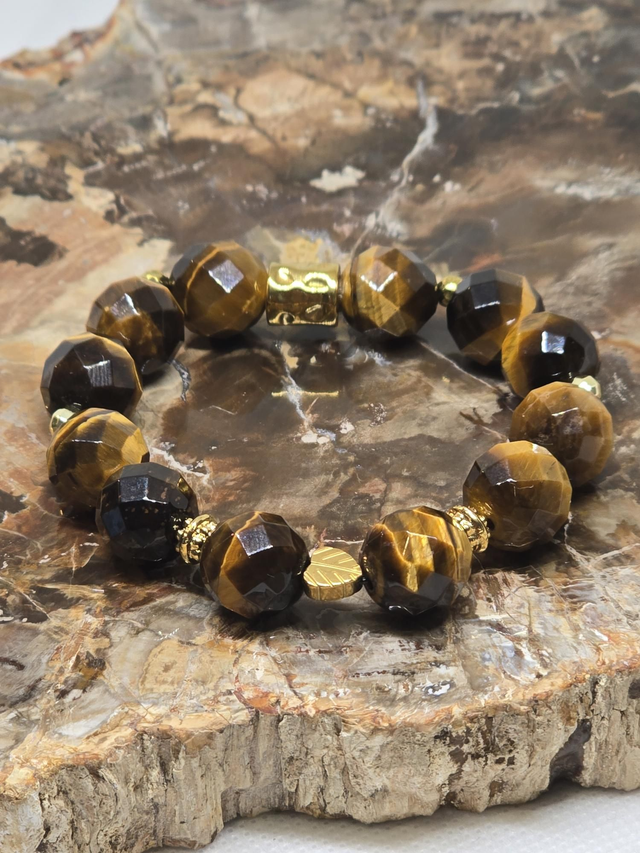 Bracelet Œil de tigre à facettes XL en 1,2 cm