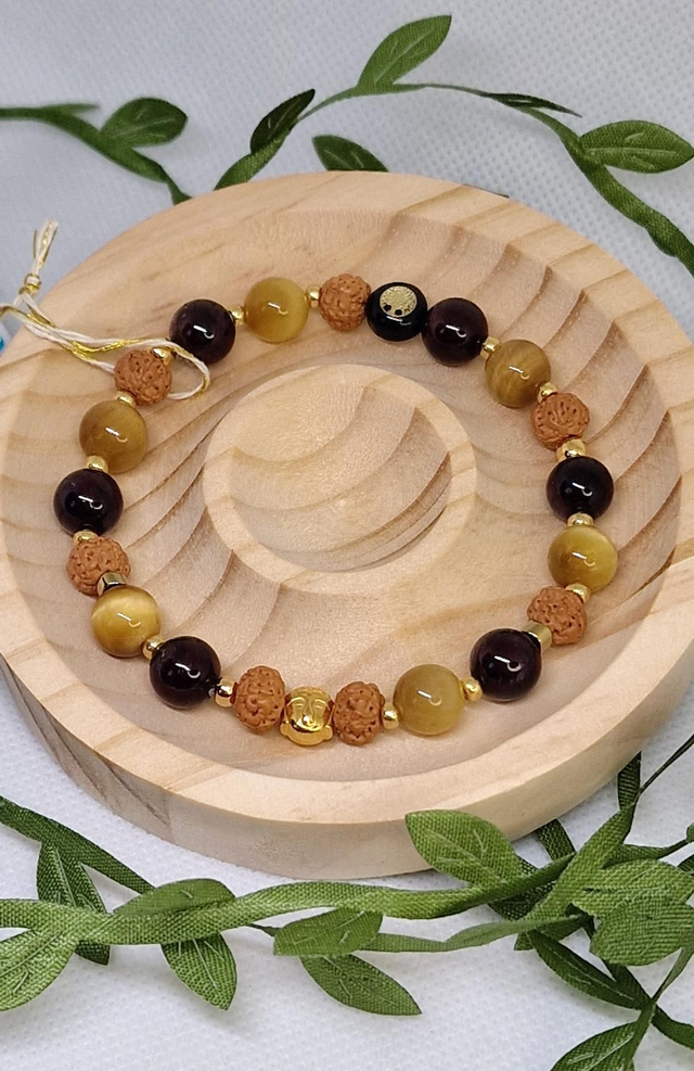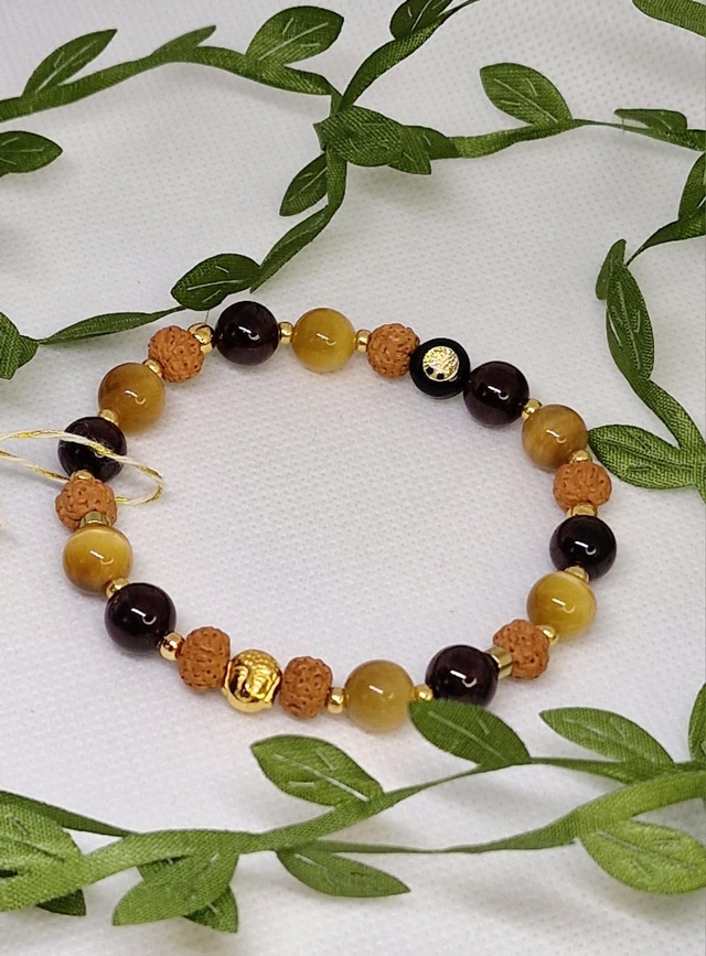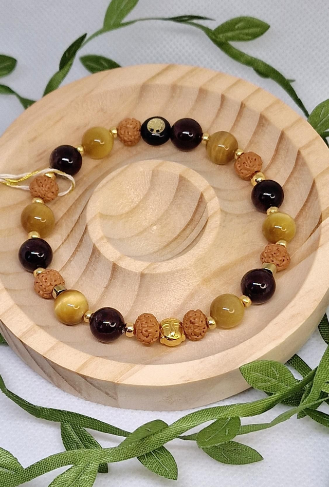 Bracelet Œil de tigre doré, Grenat, Œil de Rudra en 0,8 cm