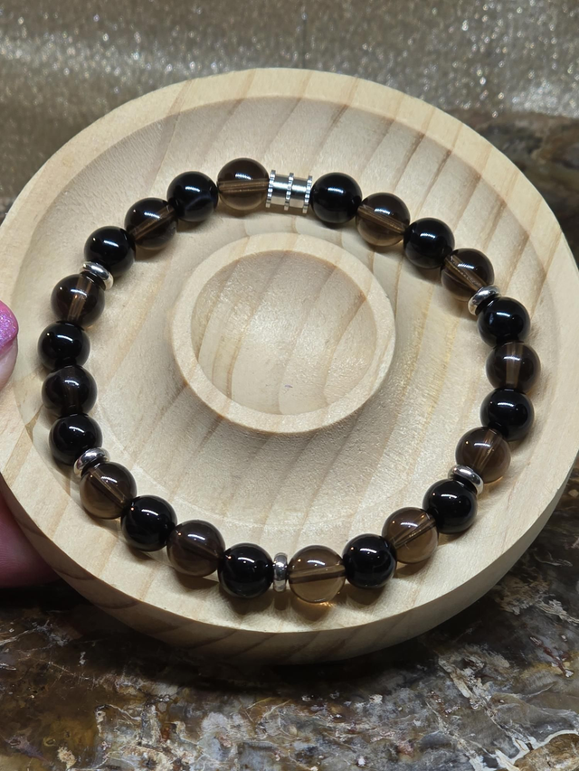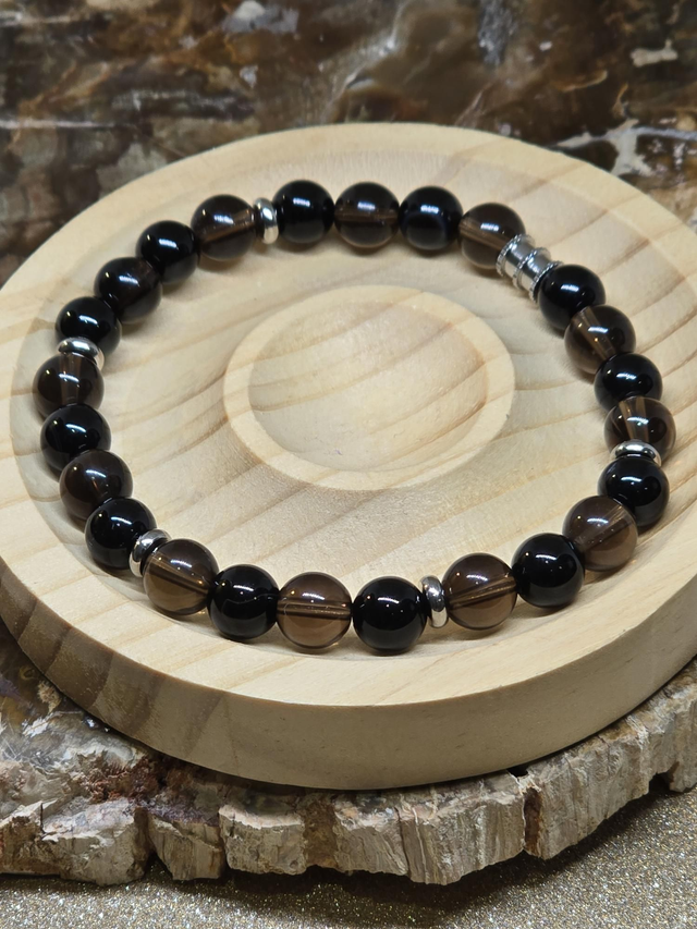Bracelet Quartz fumé et Onyx en 0,8 cm