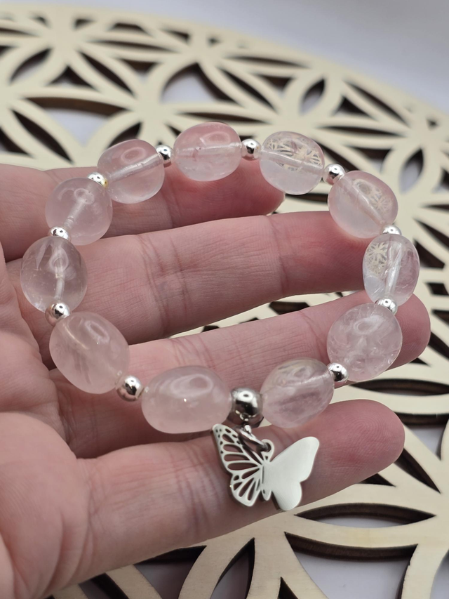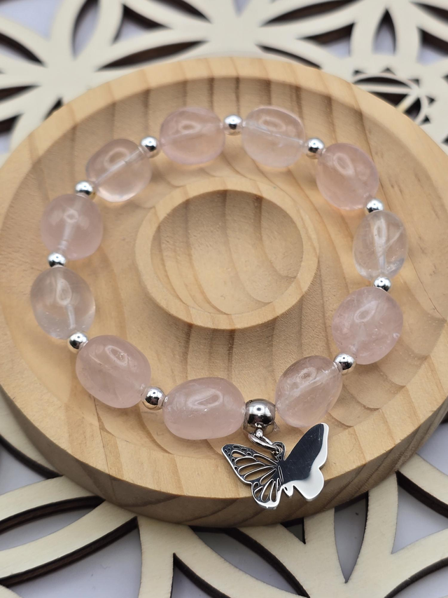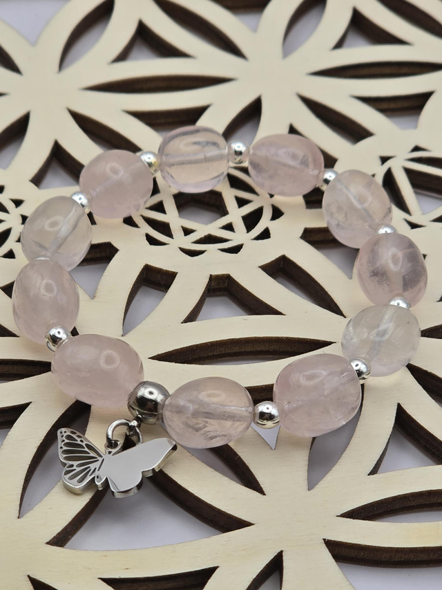 Quartz rose : Chakra du cœur, elle convient à tout âge, recommandé sans modération. Apporte compassion, compréhension, amour universel, apaisement, confiance, calme, sérénité et douceur. Le quartz rose guérit le cœur et ses blessures.
