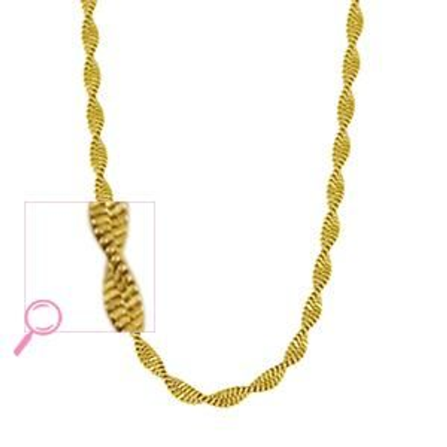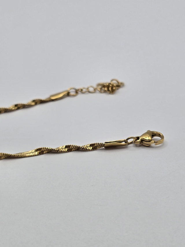 Chaîne en acier inoxydable effet torsadé doré et chaînette d'extension.