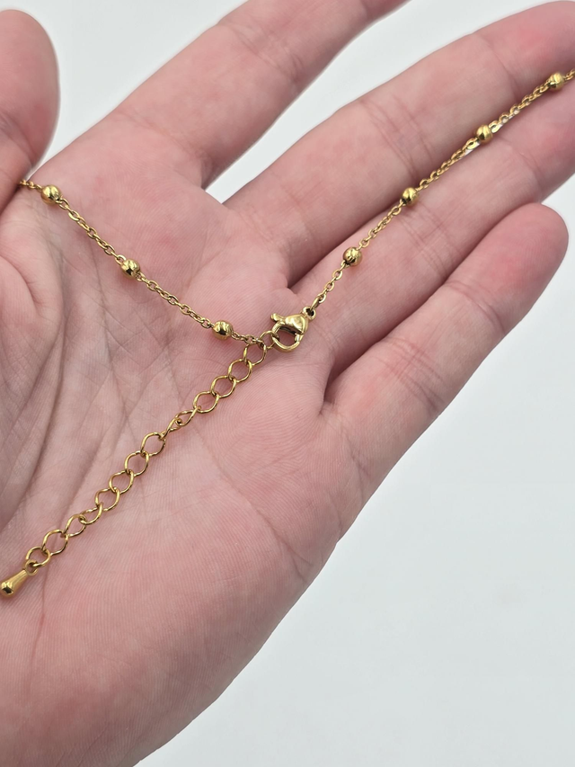 Dimensions : chaîne d'environ 45 cm + chaînette d'extension de 5 cm.