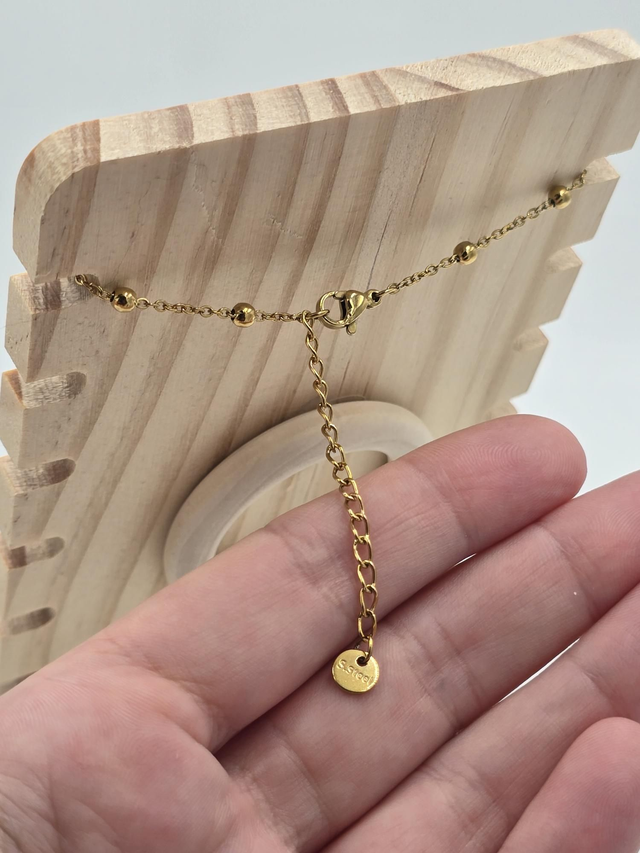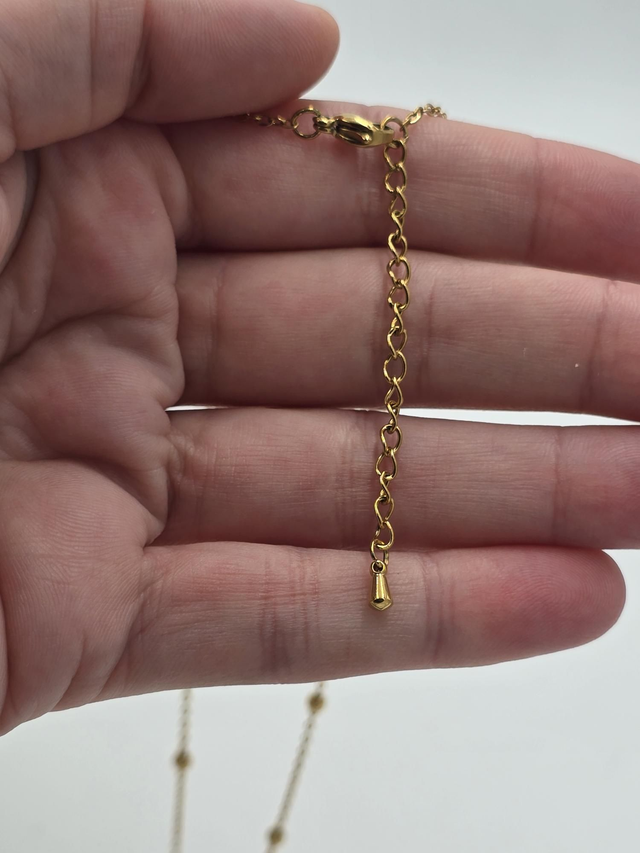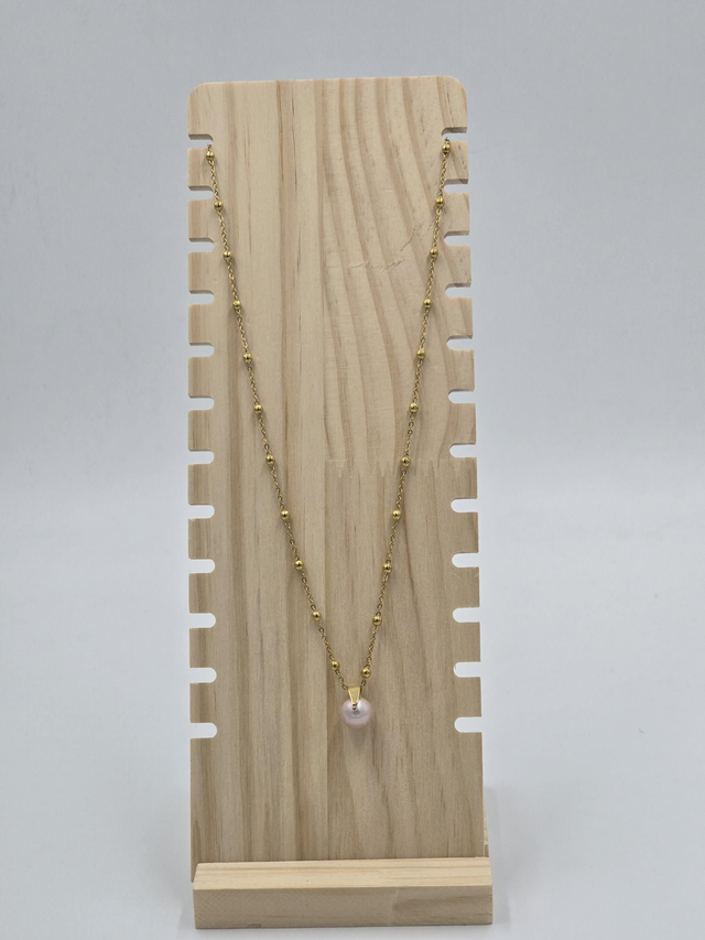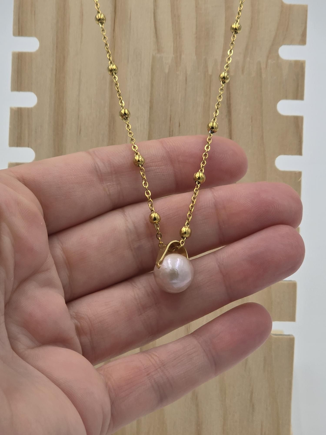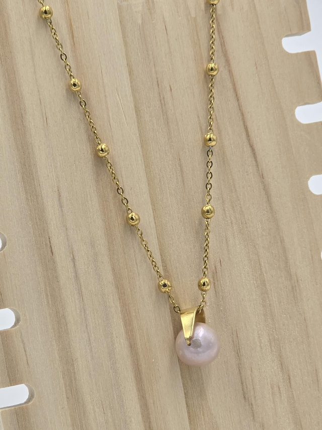 Collier fait main en acier inoxydable doré et perle de culture d'eau douce rose. Longueur d'environ 45 cm + chaîne d'extension de 5 cm.