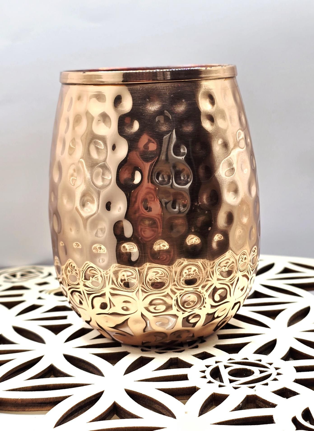 Selon l'art ancien en Inde, boire de l'eau dans un gobelets de cuivre équilibre les trois énergies appelées Dosha (éléments Vata-air, éléments Kappa-eau et éléments Pita-feu) qui circulent à l'intérieur du corps humain.