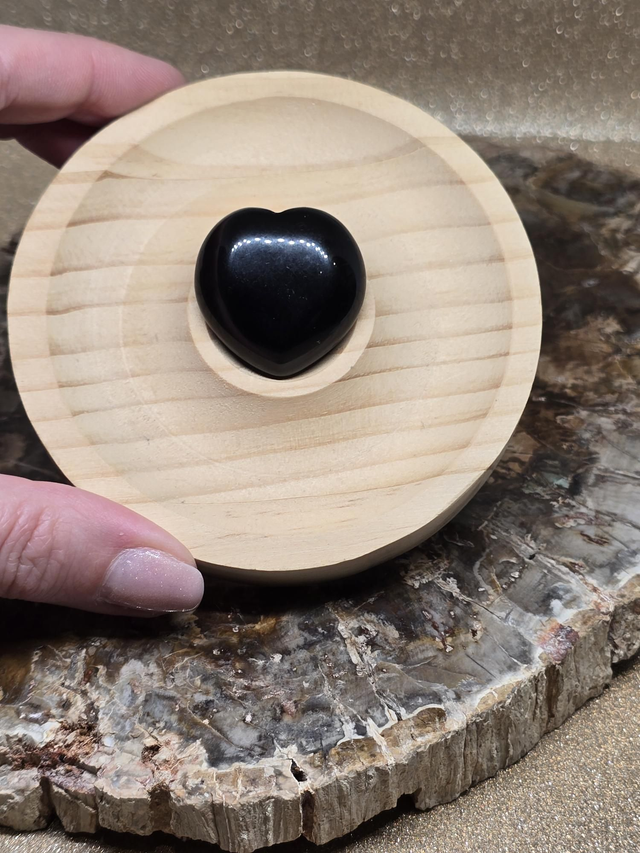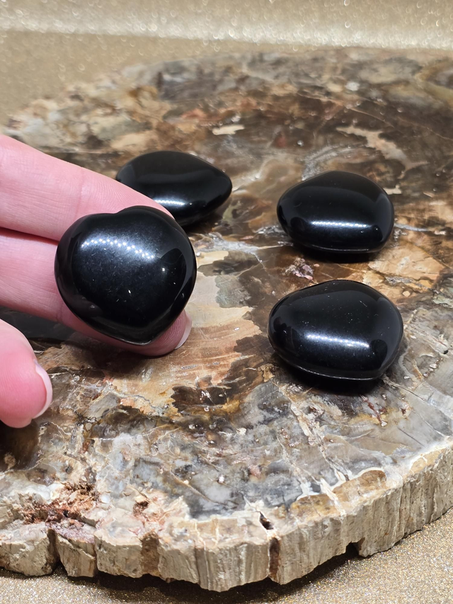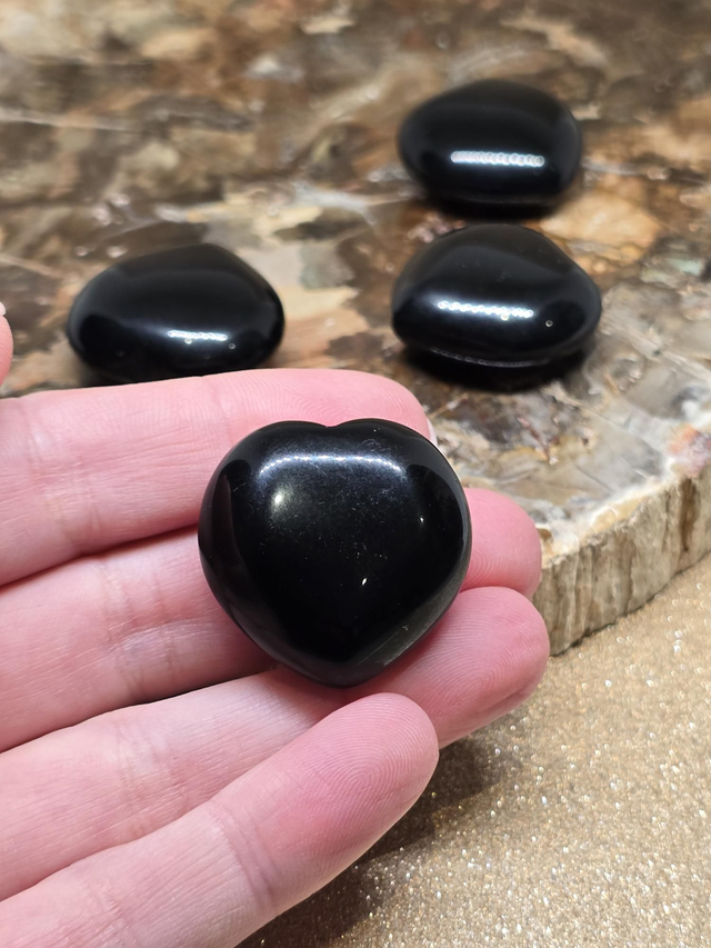 Obsidienne noire en forme de cœur d'environ 3 cm.