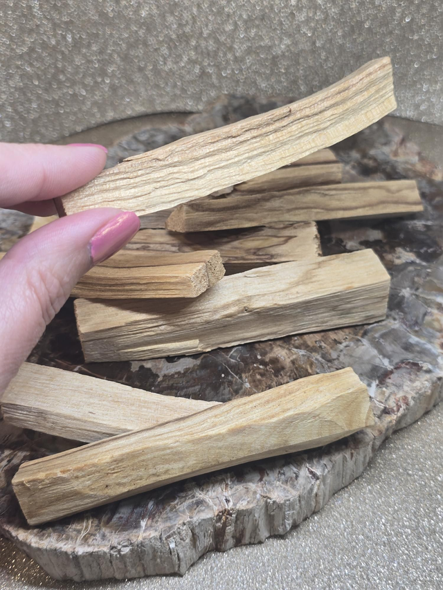 Palo Santo signifie bois sacré, il a des vertus de purification, de relaxation et de connexion à soi. Parfum boisé intense. À utiliser pour purifier les pierres ou maison en ouvrant les fenêtres.