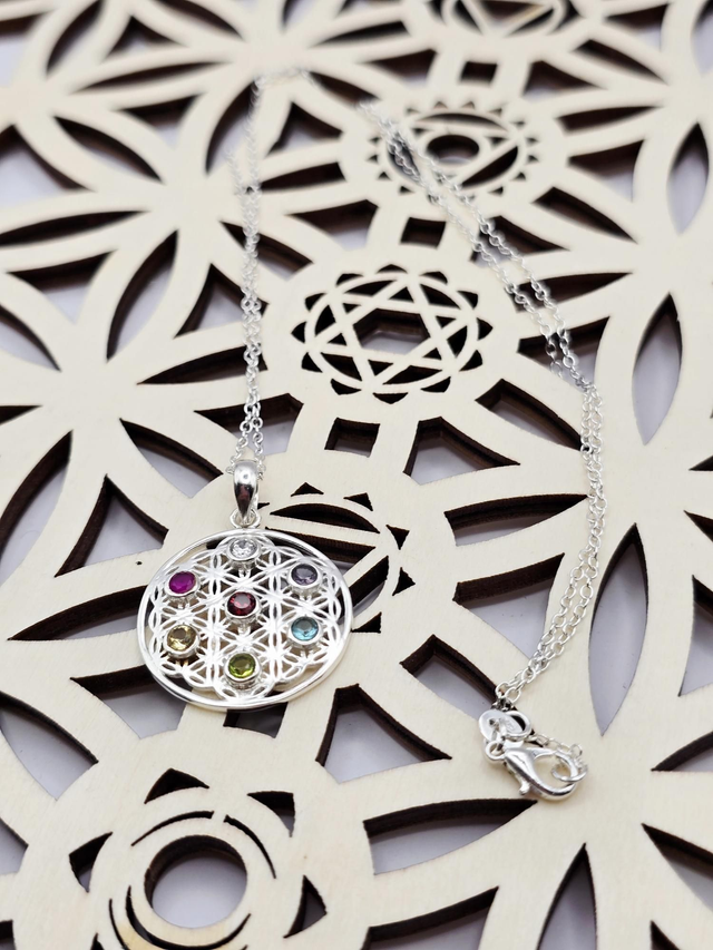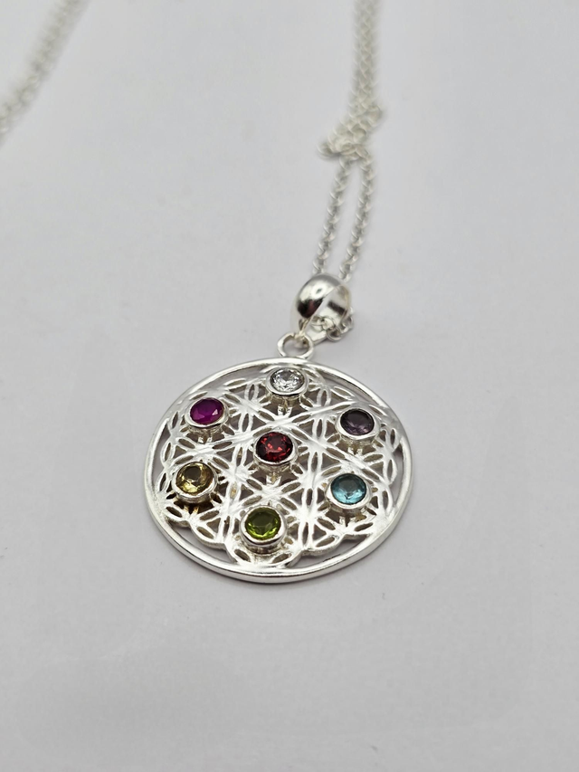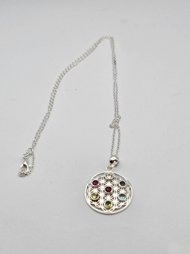 Magnifique pendentif 7 chakras et chaîne en Argent 925 de 55 cm environ.