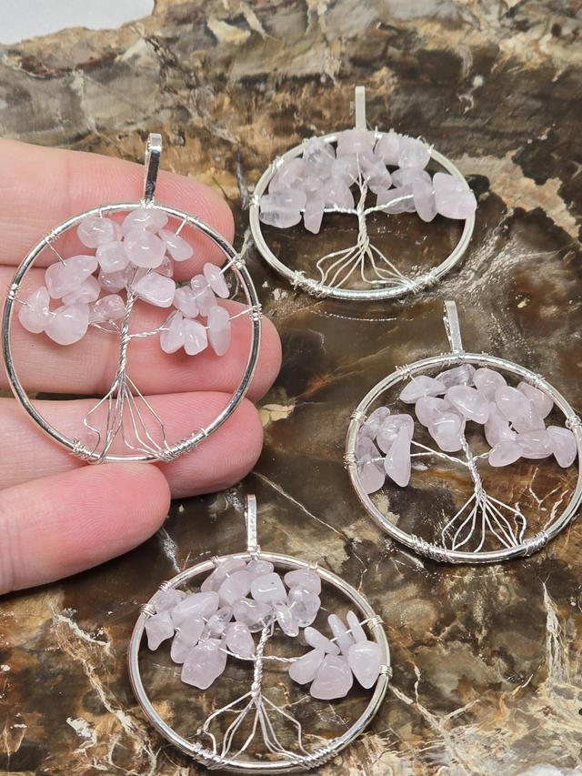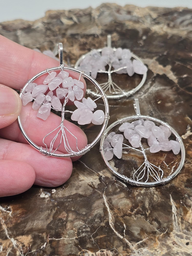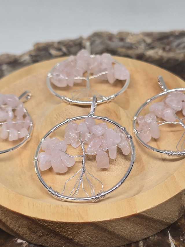 Pendentif en Quartz rose en forme d'arbre de vie.
