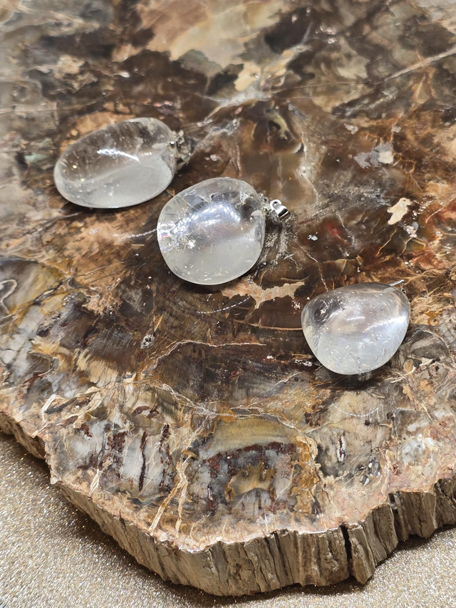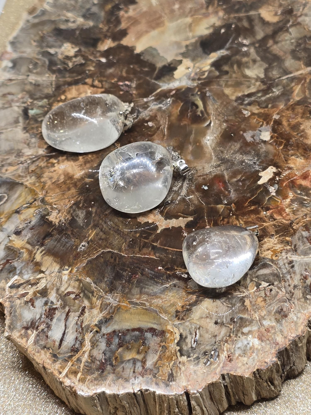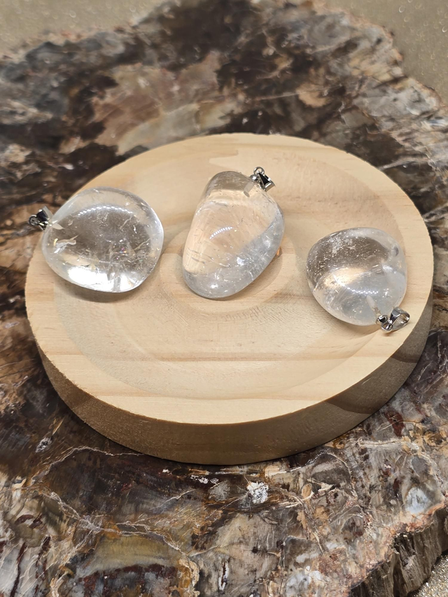 ✨ Pendentif forme libre en pierre naturelle de Cristal de roche, environ 3 cm (hors bélière argenté).