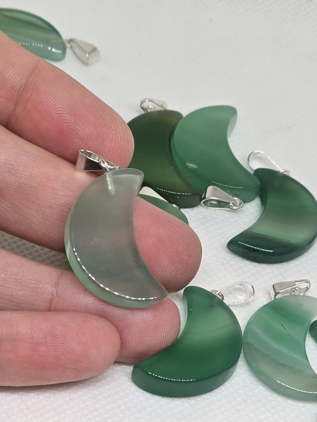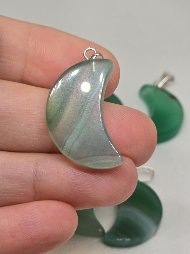 Pendentif en Fluorite verte en forme de lune.