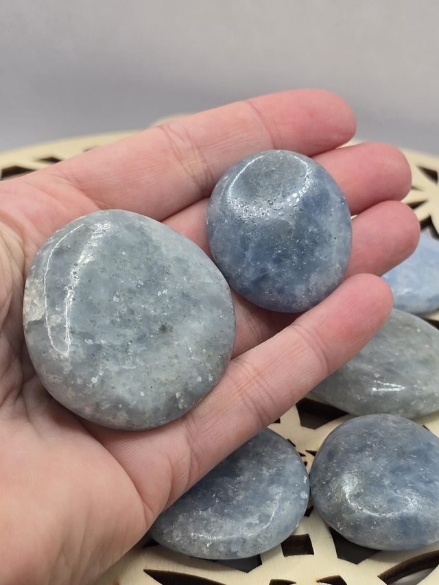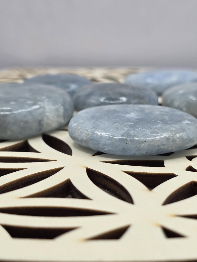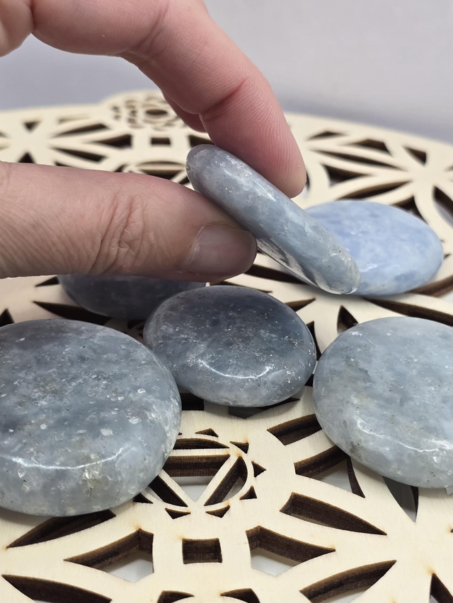 Pierre plate de Calcite bleue d'environ 3 à 5 cm.