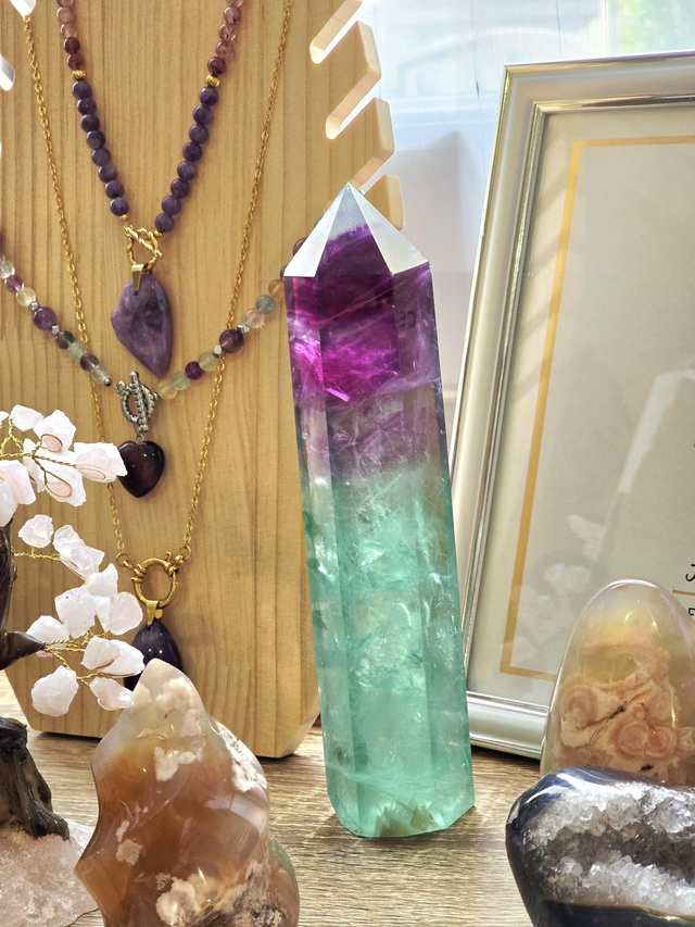 Fluorite violette : chakra du 3ème œil, aide à développer les capacités intuitives, spirituelles et à accéder à la sagesse. Permet de nous ouvrir à ce qui dépasse le visible. Facilite les états de méditation et renforce la communication télépathique. S'utilise souvent en fin de soin énergétique afin de mieux intégrer les nouvelles informations. Avec la flurorite violette, la tristesse devient projet.