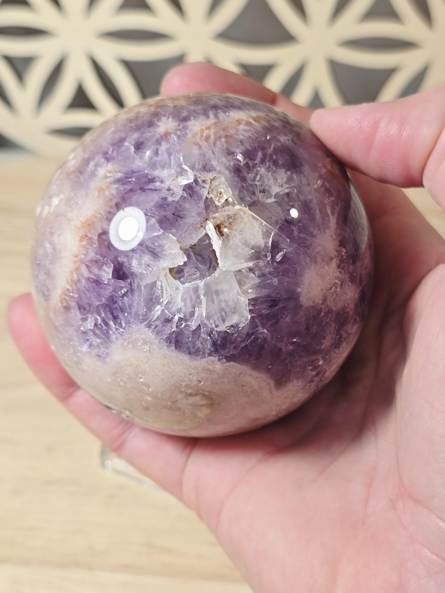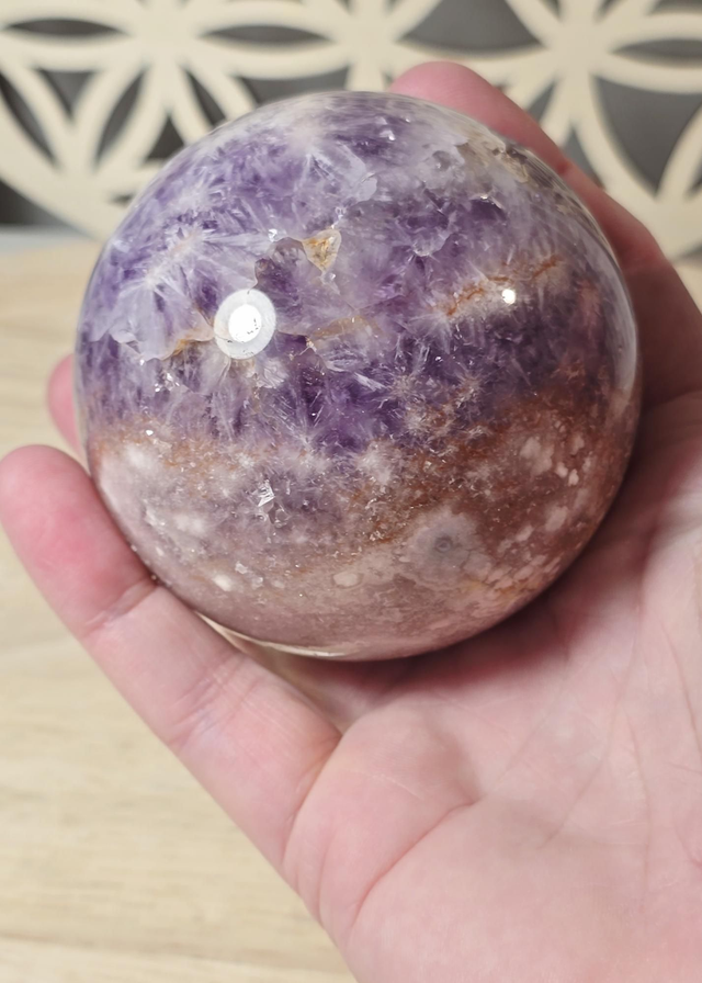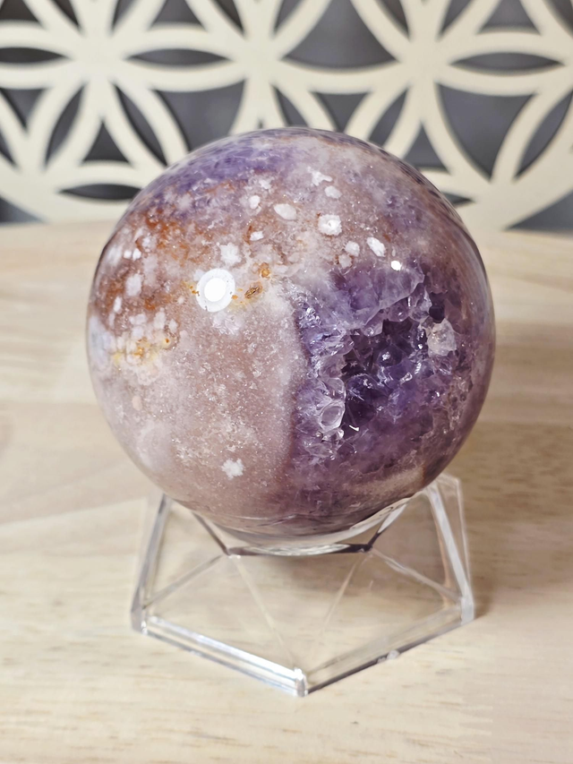 Magnifique sphère en Agate fleur de cerisier et Améthyste.
