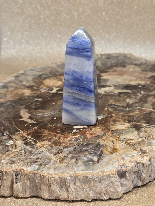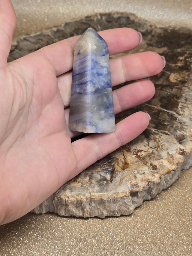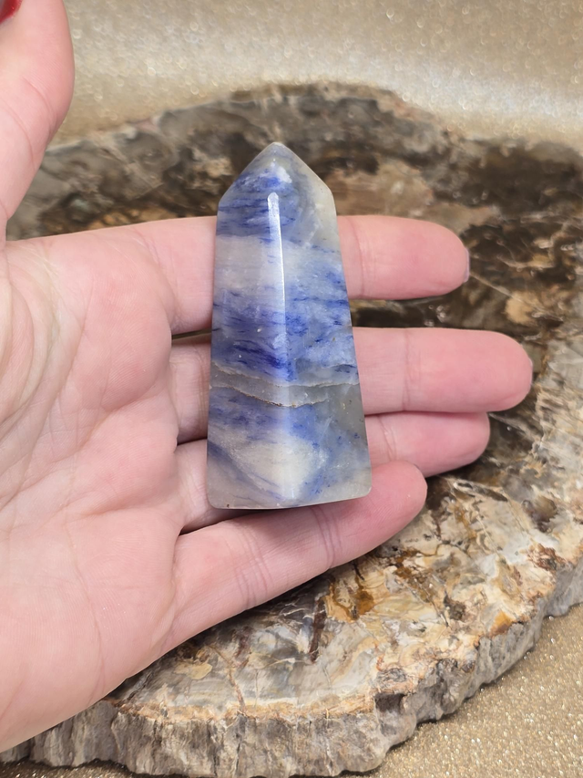 Afghanite bleue d'environ 6,5 cm en forme de pointe.