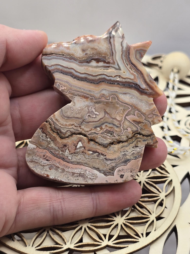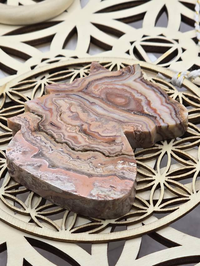 Agate crazy lace : Chakra sacré (orange) : pierre d'apaisement, aide à maîtriser ses peurs ou phobies, à surmonter la tristesse intense, donne confiance en soi, diffuse une paix intérieure, renforce le sentiment de bienveillance, aide à relativiser les rancœurs. Absorbe la douleur émotionnelle.