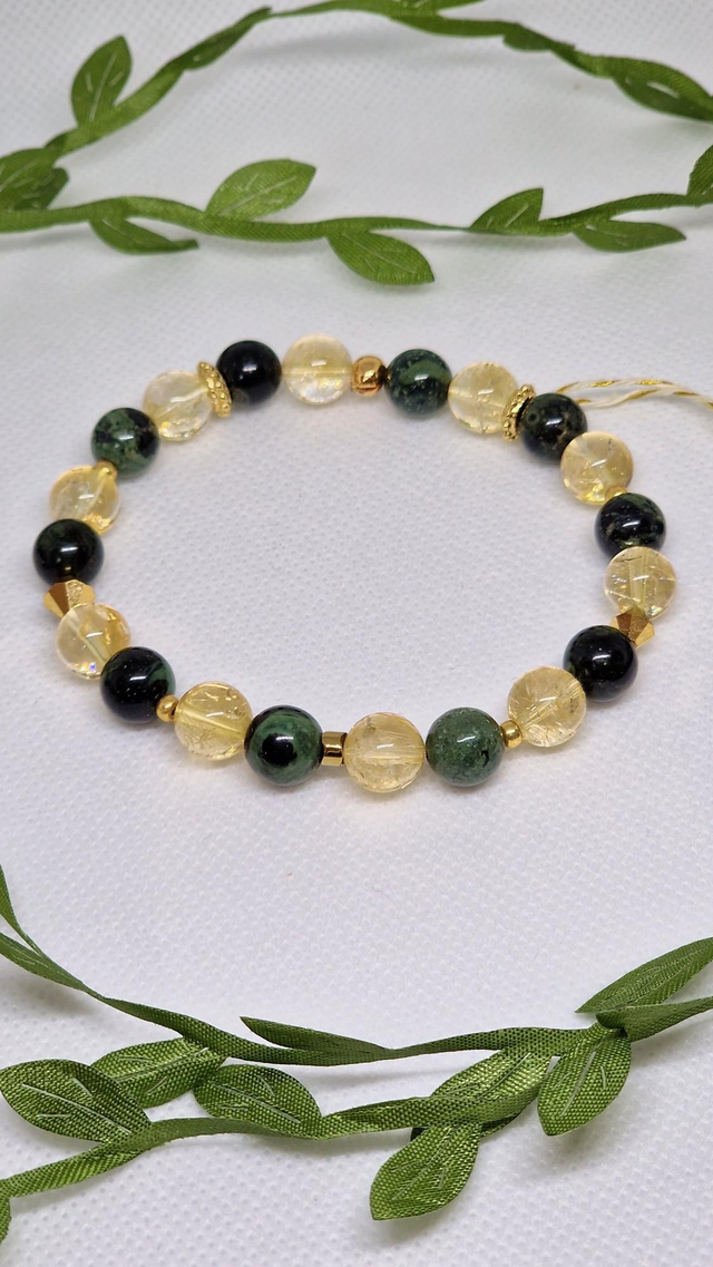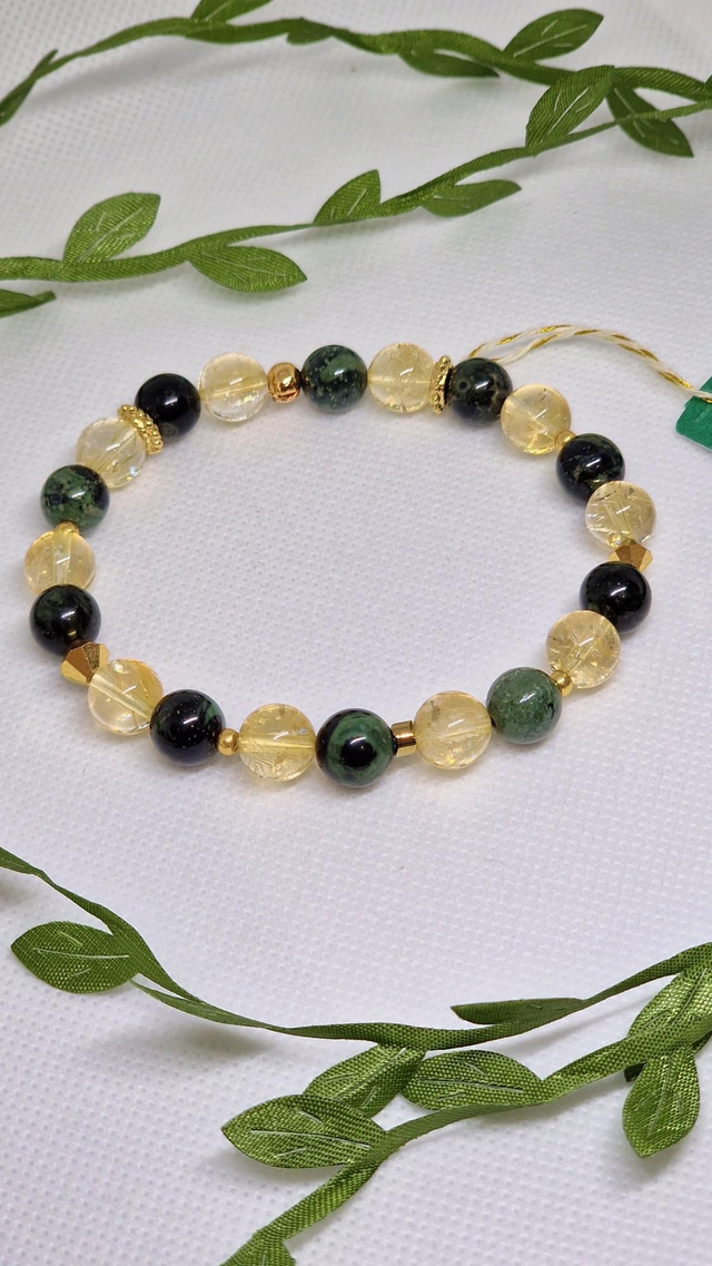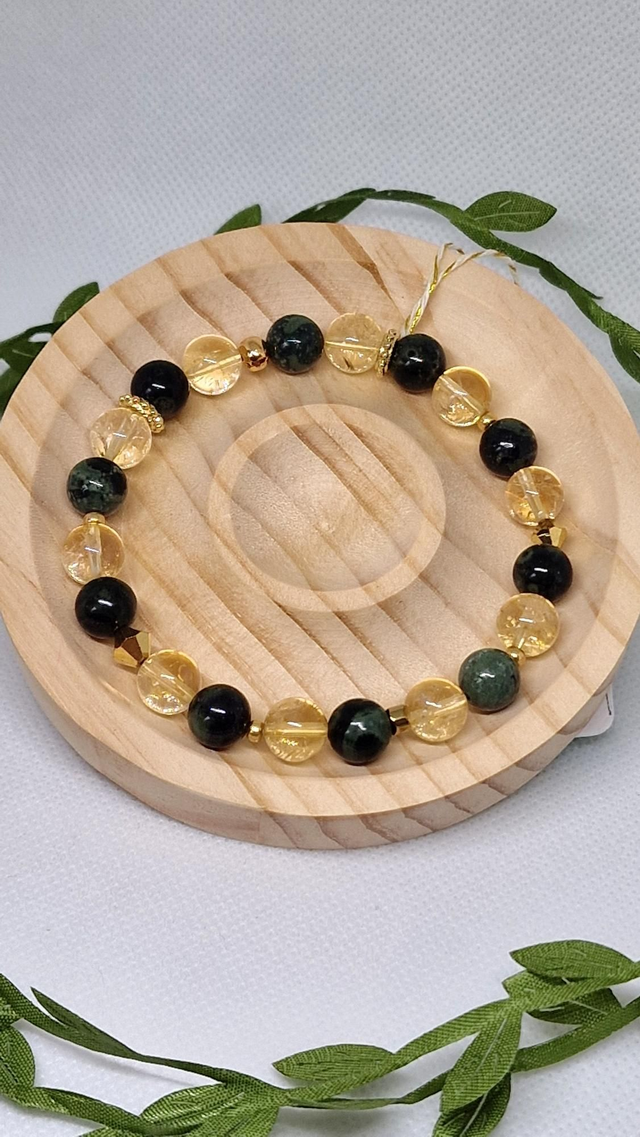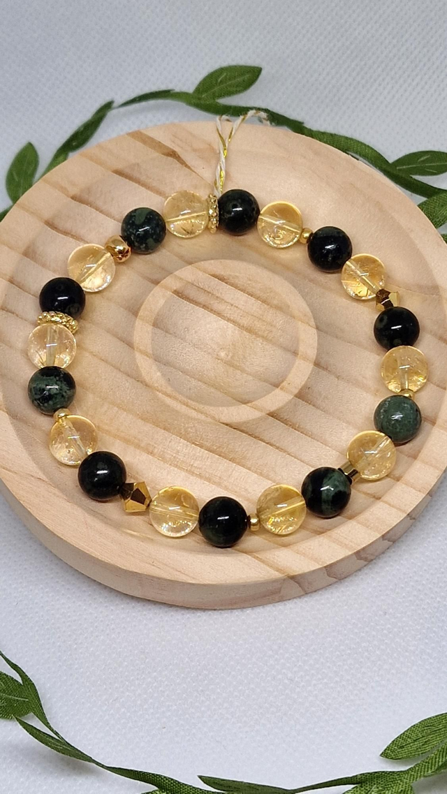🌟 Bracelet fait main composé de Jaspe Kambaba et Citrine en 0,8 cm ainsi que de perles dorées à l'or fin.