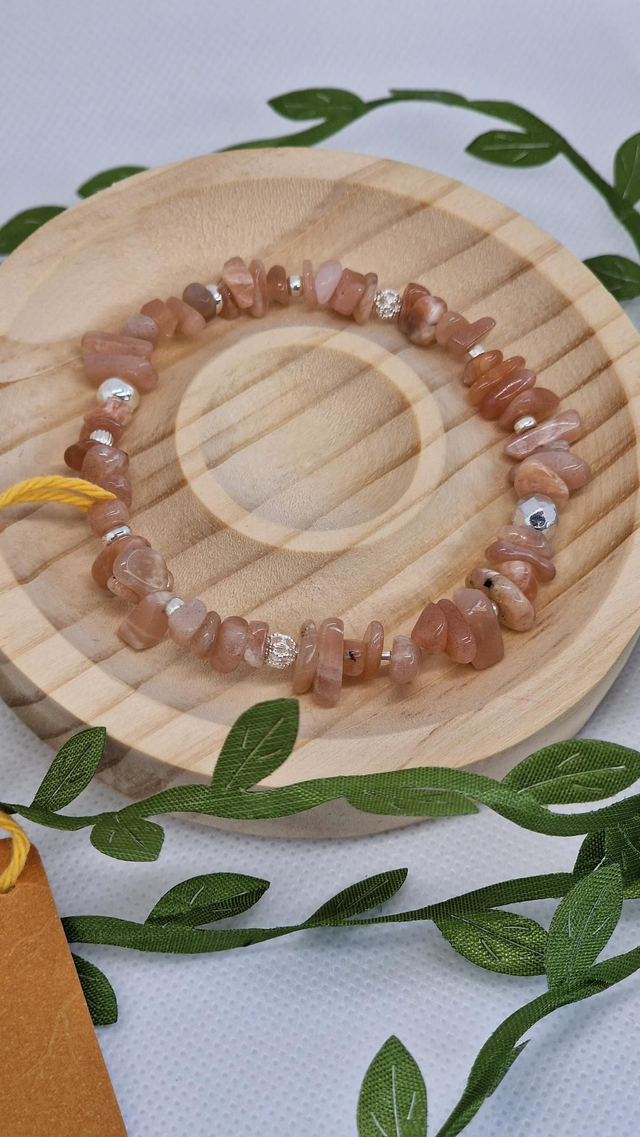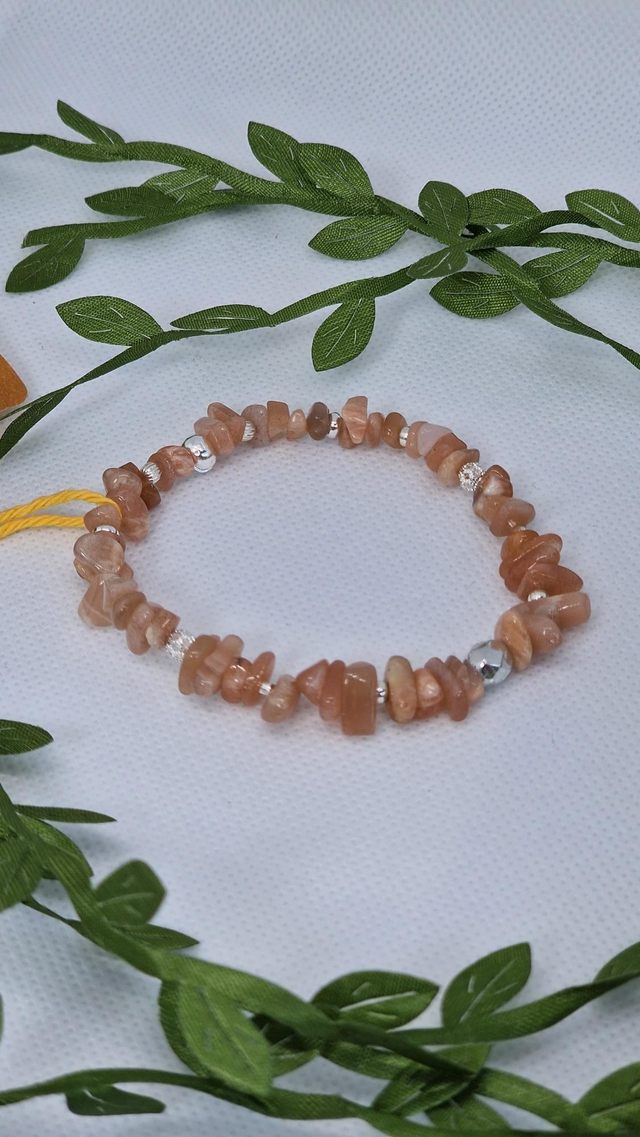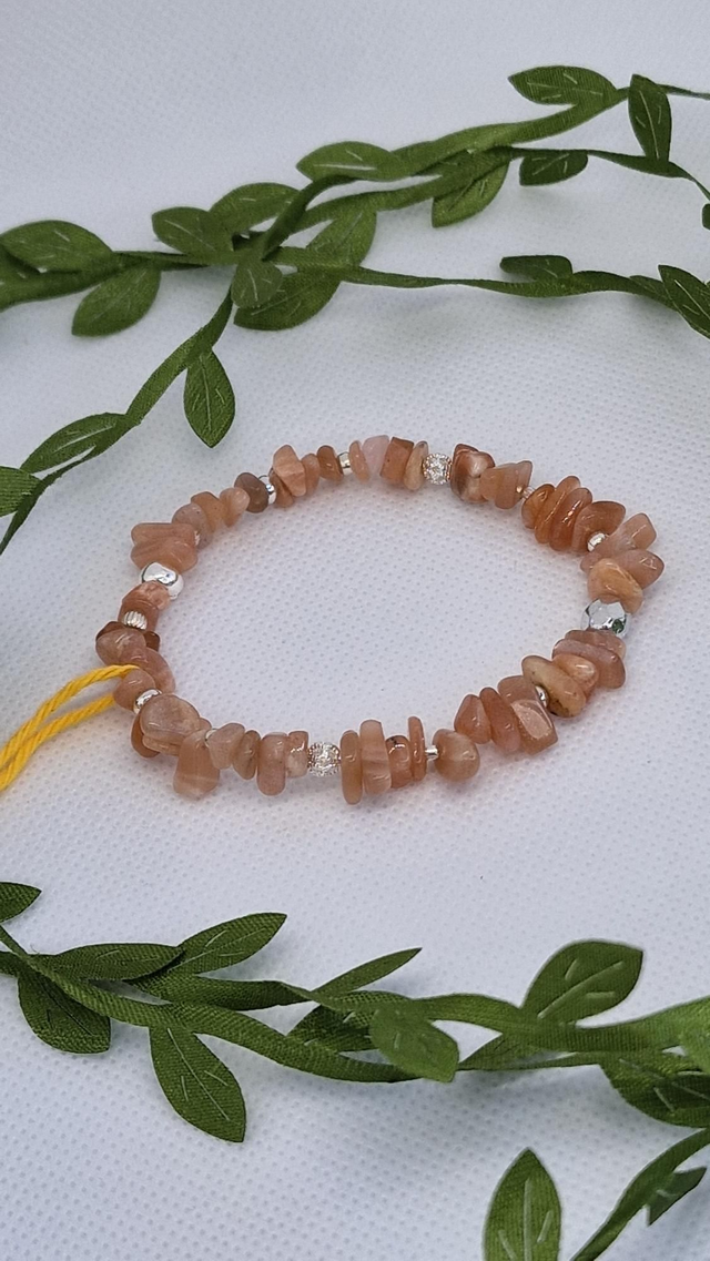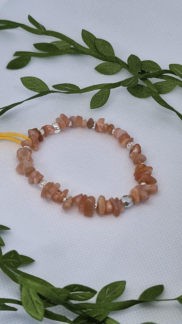 🌟 Bracelet baroque fait main sur fil élastique solide et composé de Pierre de soleil forme chips ainsi que de perles dorées à l'or fin.