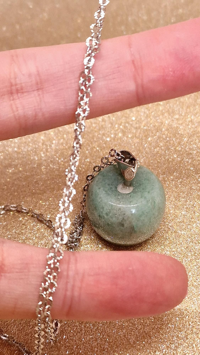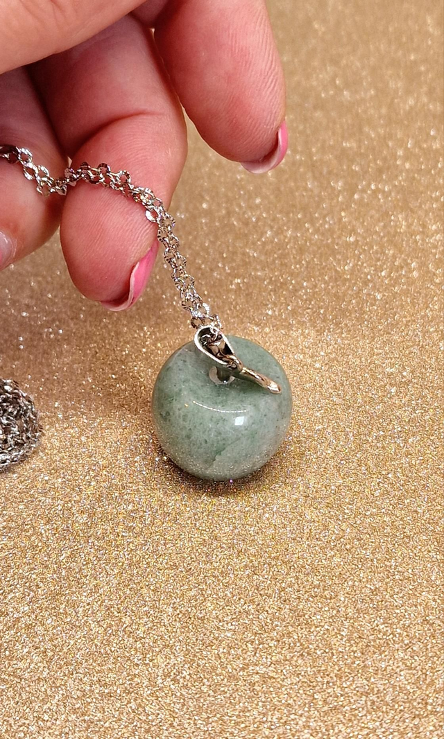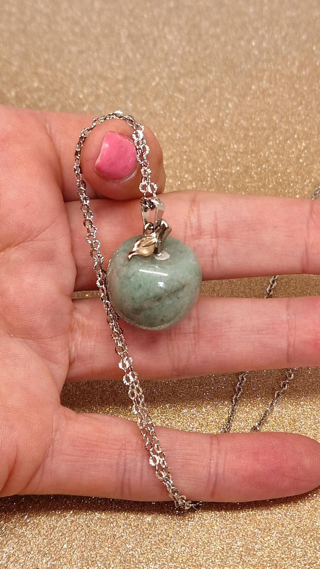 ✨ Collier fait main avec pendentif pomme en Aventurine verte et chaîne maille forçat striée en acier inoxydable. Fermoir crochet.